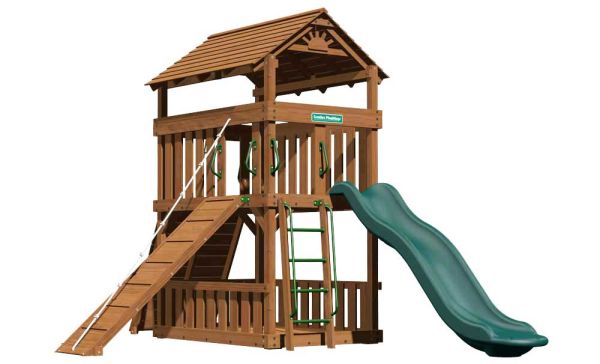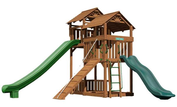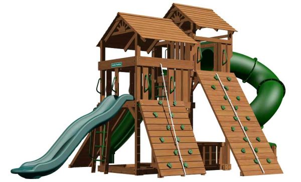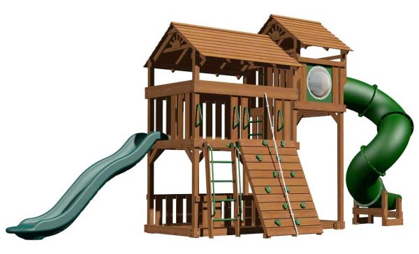 Our line of commercial wooden playground equipment is sure to please at any park or schoolyard. They contain the same great elements as our residential offerings but are scaled to accommodate the larger crowds. Precisely crafted from the finest pieces of wood, they are every bit as beautiful as they are big. With smooth lines and subtle colors it's easy to imagine how it will add an aesthetically pleasing element wherever it's placed.