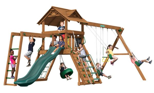 A premium wooden playset will have your kids swinging, sliding, climbing and spending the day away from those screens. Choose from features like monkey bars, clubhouses, rock walls, slides as well as built-in accessories like 360˚ tire swing and a picnic table. They’re all built from quality materials to last for a lifetime of safe play.